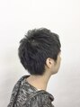 モミアゲがすっきり収まるように薄く短くしました。簡単にセット出来る様に束感が出るようにカットしたのと、全体を軽くしてバランスが整うようにしました。