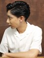 ベースは前髪長めのツーブロックの髪型。パーマをゆるくかけてトップのボリュームと毛流れを作る事でハチの膨らみを解消しています。ツーブロック部分にグラデーションをつける事で伸びてきても気になりにくくした30代40代の方にもオススメの大人の髪型です。
