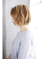 揺れるように落ちるミックスカールスタイルです。ハイトーンのカラーがより柔らかさを出し、かきあげた前髪が明るい印象を出すボブスタイルです。