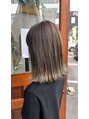 ベースはAラインのボブディ。毛先の切りっぱなし感と程よい束感がいい感じです^^カラーはハイライトオンで作るグレージュ。透明感と柔らかさが可愛いですね♪