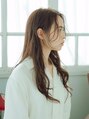 胸下のロングスタイル。毛先は軽めの質感で顔まわりや表面にレイヤーを入れています。とくに、顔まわりには細く細かい束が作れるようにレイヤーを入れているので胸下のロングスタイルでも重たく見えないように仕上げています。