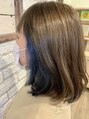イルミナカラー☆インナーカラーブルーのインナーカラーは1度ブリーチをしてからカラーしました!重なる部分はアッシュベージュにしてツヤ感を出しました!