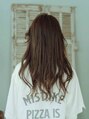 胸下のロングスタイル。毛先は軽めの質感で顔まわりや表面にレイヤーを入れています。とくに、顔まわりには細く細かい束が作れるようにレイヤーを入れているので胸下のロングスタイルでも重たく見えないように仕上げています。