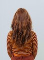 ローレイヤーのスタイルにトップから強めカールのパーマをかけています。前髪の長めなのでエッジが効いているが、大人な女性を演出してくれます。カラーはツヤ感のあるオレンジベージュ。ロングスタイルですが、軽やかでさわやかなスタイルでおすすめです。