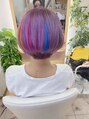 全体を ショッキングパープルにその後は エクステでメッシュ
