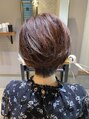 トップにボリュームを出し、セットで崩してもよし、耳掛けもありのボブ。ネープは面長に見えないように短め。