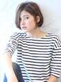 ショートボブでも毛先のカールとノーンバングでちょっぴり色気を漂わせて☆大人のオフェロ全開のセンシュアルカラー。春夏オススメのグレージュで大人の透明感アップ!