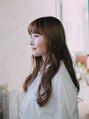 Aラインのロングスタイルにゆるふわウェーブをプラス!アンニュイな脱力系カジュアル感☆前髪は目上の重ためバングで大人可愛い雰囲気☆カラーはミルクティーで透明感と抜け感のあるスタイルに!ちょっと個性的にショートバングもおすすめ!