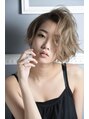 顔が隠れるぐらいのうざバングで小顔,効果☆ブリーチを施したグレージュが重さを消してくれます☆