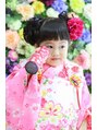 七五三スタイル子供なので少し上にボリュームを持ってきたミッキーのようなシルエット。大きめな花飾りを付けてはなやかに!