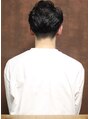 ベースは前髪長めのツーブロックの髪型。パーマをゆるくかけてトップのボリュームと毛流れを作る事でハチの膨らみを解消しています。ツーブロック部分にグラデーションをつける事で伸びてきても気になりにくくした30代40代の方にもオススメの大人の髪型です。
