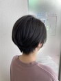 表面にハイライトを施し、暗めのアッシュグレーにカラーしてます☆首元すっきり、耳に少しかけてあげるだけで、よりすっきりしたスタイル、束感も出て動きのあるショートです!お手入れ、スタイリング簡単です☆