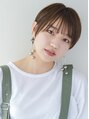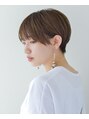 女性らしいタイトな丸みが可愛いショートボブスタイルです。サイドは耳下に設定。襟足はすっきり短めに。前髪は肌が透けるようにして透明感のある雰囲気にカット。カラーは、ベージュ系で柔らかな印象です。