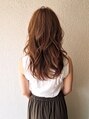 大人可愛いカジュアルスタイル!これから流行間違い無しの大人ルーズなスタイル。黒髪でも似合う上品なシルエット!センターパートで大人っぽいけど甘さも欲しい人にオススメ!透けるような透明感のあるベージュブラウンカラーに柔らかなパーマでモテ度UP!