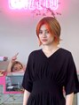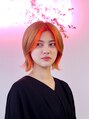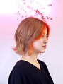 カラーマニュキアでビビットなオレンジをONしたバングカラー。全体のカラーはブリーチ後のギラつきのみを押さえる程度に色味を入れました。