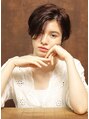 前髪長めのすっきりショート。後頭部は頭の形がよく見えるように丸みをつけ、襟足はキュッとしめ首元を綺麗に見せてくれます。短めショートですが、女性らしさを全開に出した綺麗ショートです!