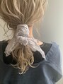 外国人風ホワイトブロンドカラー×ポニーテール紐アレンジ/ホットペッパービューティー