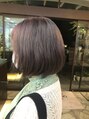 コロンとした可愛いボブです!癖があるお客様なので、ハネないように。お客様自身が扱いやすいようにカットしてます。簡単な乾かし方もレクチャーしますよ☆カラーはブリーチをして透明感カラーに。シンプルなスタイルこそ、カラーでお洒落を☆ /透明感カラー