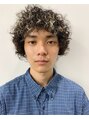 若かりし頃のマイケルジャクソンを彷彿とさせるヘア強めのスパイラルパーマにフロントのみハイライトを入れたスペシャルヘア担当 小林賢司