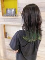 【阿形】ロングウルフ・地毛を活かしたインナーグリーン/ホットペッパービューティー