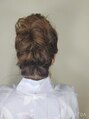 襟足5センチのショートボブをアップにしたしたいるです。襟足の短い毛は先にしばって、最後に上の長い毛で隠してます。色々は出来ないのでクルリンパがベースです。