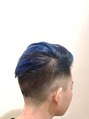 フェードスタイル★ダブルカラー(ケアブリーチ使用)ブリーチ2回、その後、青、グレーをベースに、緑、赤をワンポイントで入れました!!
