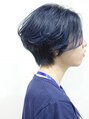 ネイビー ハンサムショートカラーを濃い目に入れる事で褪色の過程も楽しめます。ショート ショートボブ くびれショート マッシュショート ハンサムショート ボブ ミニボブ