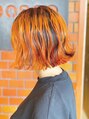 根元と地毛を塗らず、ランダムにブリーチをしてからオリジナルカラーで、アプリコットオレンジにしました