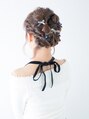 細かい編み込みリボンアレンジスタイル☆編み込みとねじりくるりんぱを使ったアレンジスタイルです!!ところどころ、バランス良く散りばめたリボンが可愛くまとめてくれています☆顔まわりや襟足などの後毛を残すのがルーズさを引き出して◎【新小岩】