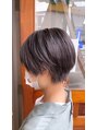 ラベンダーグレーが可愛いカラー。ブリーチ必須ですがケアブリーチとカラーシャンプーでダメージ&色もちUP!カットは丸みと毛先の質感にこだわったハンサムショート。