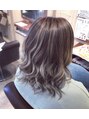ブリーチで太めハイライト全体にパープルアッシュをONカットは軽さを出し巻きやすいカットに