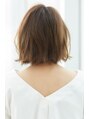 肩上レングスの切りっぱなしボブスタイル。耳かけをすることによって春らしく抜け感を出しています!毛先は外ハネ、トップはふんわりさせる事でメリハリのある大人ボブスタイルの完成です!