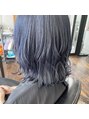 カラフルくすみメッシュカラー アッシュブルー 外はねミディアム