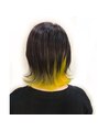 内側に入れた蛍光イエローが目をひくデザイン。外ハネにすることで動きがでて、よりアクセントに!