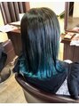 前回ハイライトブリーチしている髪の毛に上からグリーンを入れて根本をなじませました!