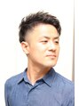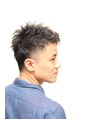 くせ毛を活かしたアップバンクスタイルです。サイドはツーブロックでタイトにトップはふわっとしたシルエットにです。