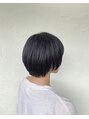 コロンとしたシルエットが可愛い、マッシュショート。カラーはワンブリーチからのアイスグレーで透明感のある暗髪ヘア。