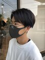 ベースはダークグレー、耳前のインナーにはネイビーのを入れさせて頂きました。男性にもインナーカラーのようなデザインカラーオススメです!