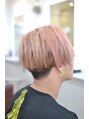 ブリーチ2回した髪に、ピンクベージュをオンカラー。根本は暗く残すことで、立体感と、伸びたときに目立ちにくくなりますよ