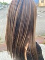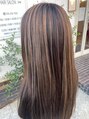 全体カラーと表面のみのハイライトカラー*全頭ハイライトまではしなくてもしっかりと印象を残せますよ*