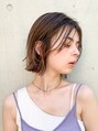 無造作な質感の、大人かわいい切りっぱなしボブです。ブリーチなしでつくるブラウンベージュで、透明感のあるヘアに。お客様一人一人の一番似合うボブ提案させていただきます。