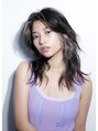 ゆるっとくびれるシルエットが女性らしいウルフセミディ。長めの前髪で色っぽさをプラス。全体のカラーはsmokyなash blackで大人の雰囲気に。顔回りから始まるハイライトで、外国人の様な抜け感を作りました。