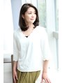 全体にしっかりレイヤーを入れた、軽やかに揺れるミディアムスタイルです。