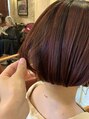 スタイルは【ブックマーク】しておくと便利です!"colorのポイント"ブリーチ無しのチェリーレッドです。ベースが10から11トーンくらいあれば可能です!ご相談下さい。根本はあえて暗めの色でリッタ感がある様に見せてます。