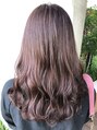 ラベンダー+ピンク+グレージュをミックスさせてピンクガーネットにしています。透明感がでるだけではなく艶感もでるのでパサつきが気になる方はおすすめです。スタイリングは1度毛先全体を外ハネにしてから、中間巻きのリバース巻き多めにしています。