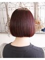 ほんの少しだけ前下りのワンレングスボブです。艶をテーマにしたデザインですので、毛量もあまり減らさず、カラーは深みと艶が出やすいバイオレットです。