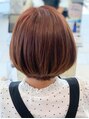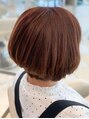 ピンクベージュの大人可愛いカラーにまるみのあるボブスタイルで幅広い世代に人気のスタイルに♪