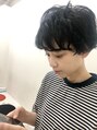 ショートヘアにパーマ、そしてブルーブラック!!可愛いですね(^.^)無造作に動きで、色んな雰囲気を楽しめます♪