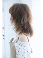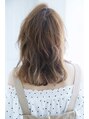 鎖骨下の長さで前上がりのAラインシルエットになるようにカットし、トップにレイヤー入れてふんわり可愛いくしました!カラーは明るめのオレンジベージュで明るく陽気な雰囲気にしました。パーマで目の高さからかけエアリーミディに!