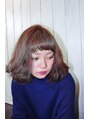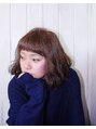 個性派前髪のクラシカルな雰囲気のボブです。カラーはピンクブラウンでツヤツヤデ柔らかく。眉上の前髪で可愛いけど大人っぽい印象に仕上げています。スタイリングも簡単なのでオススメです!!